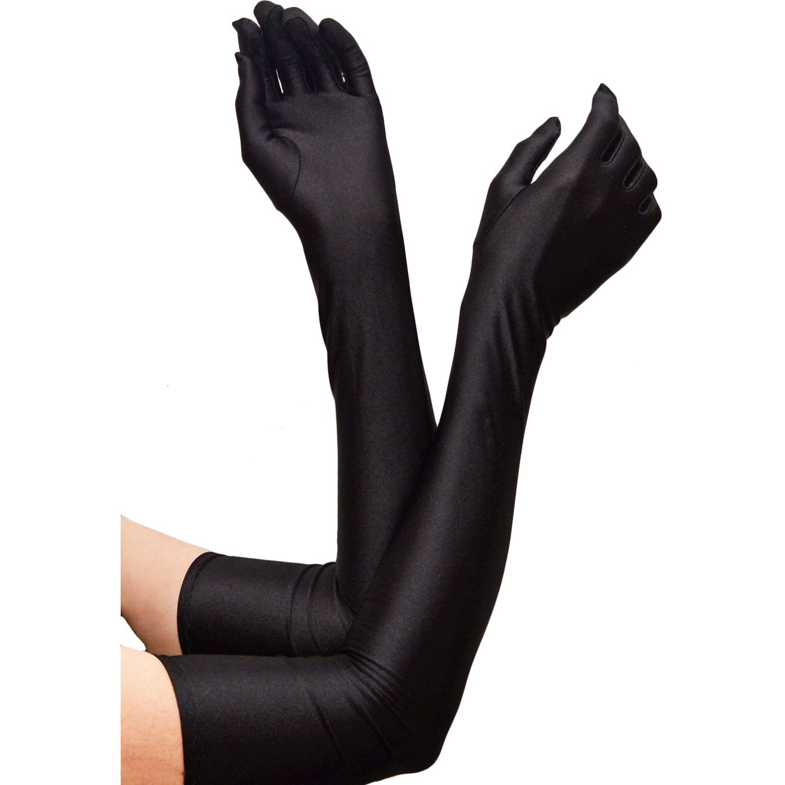 Egy pár könyékig érő fekete szaténkesztyű, egyméret.