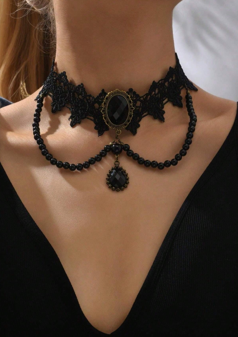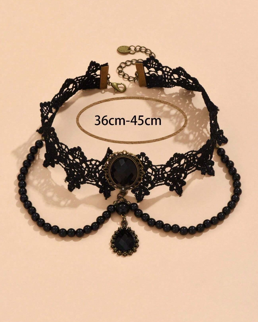 Anyaga: csipke, fém, szatén szalag. Mérete: 34-45 cm.