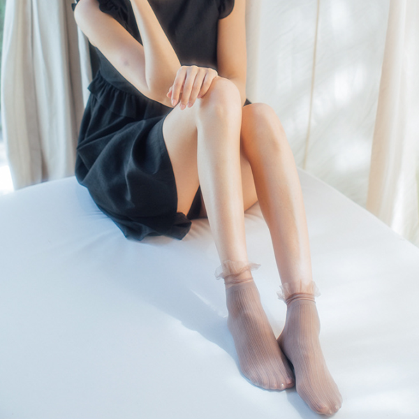20 denes csíkos divatzokni, tüll szegéllyel.