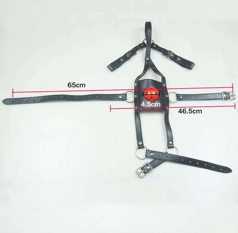 Szájgolyós fejhám, fekete/piros, állítható méret,