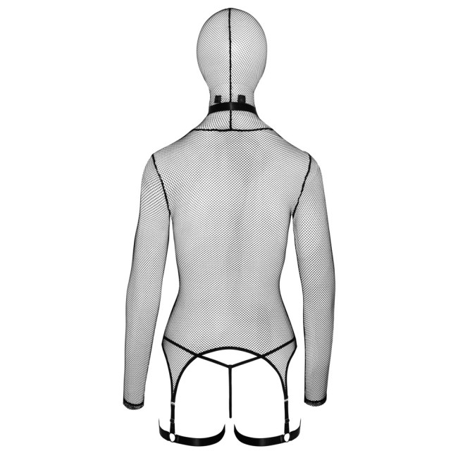 Teljes testharisnya/cicaruha szexi maszkkal és lecsatolható ostor nyakpánttal (34cm), rendkívül rugalmas anyagból.