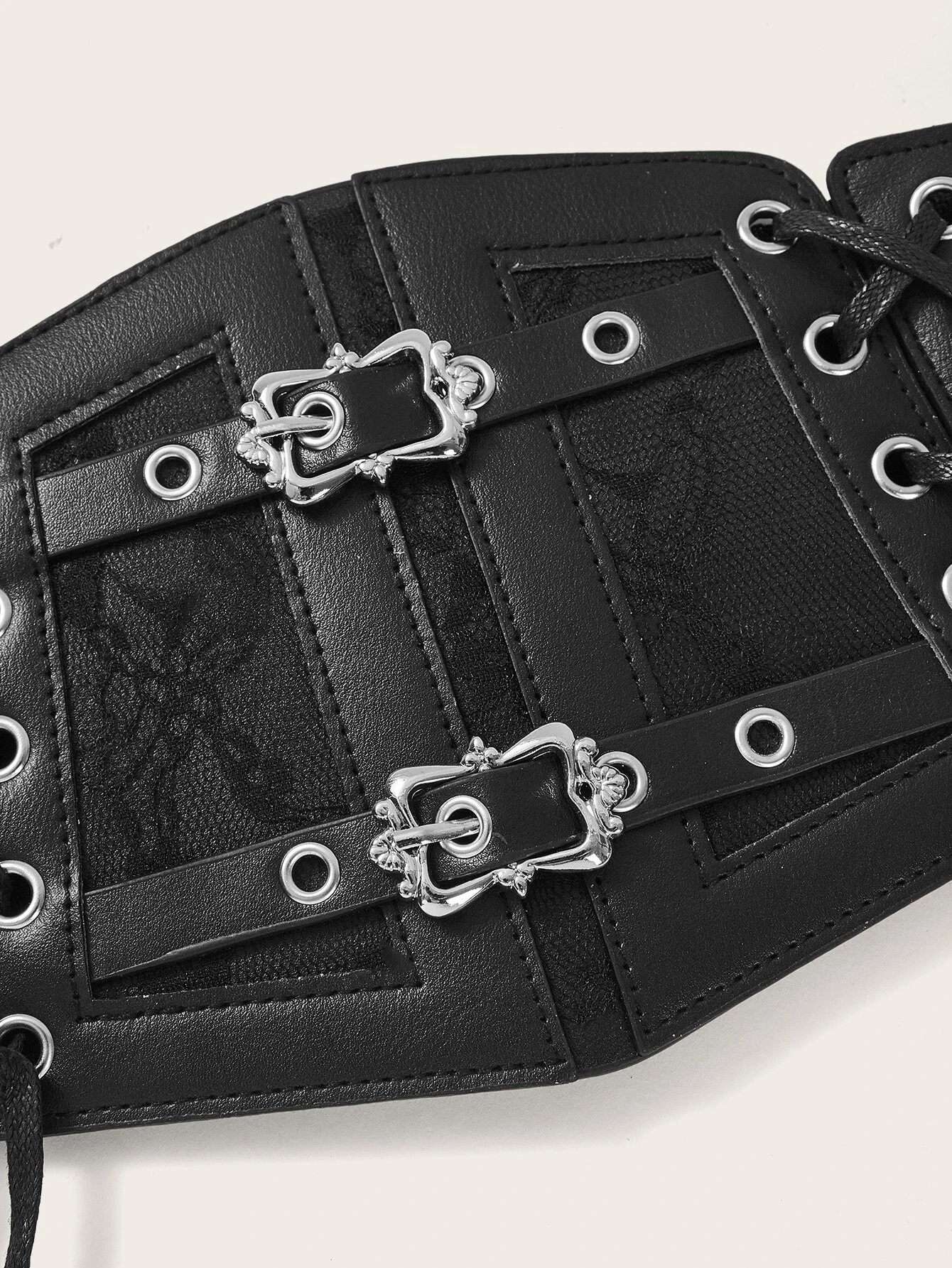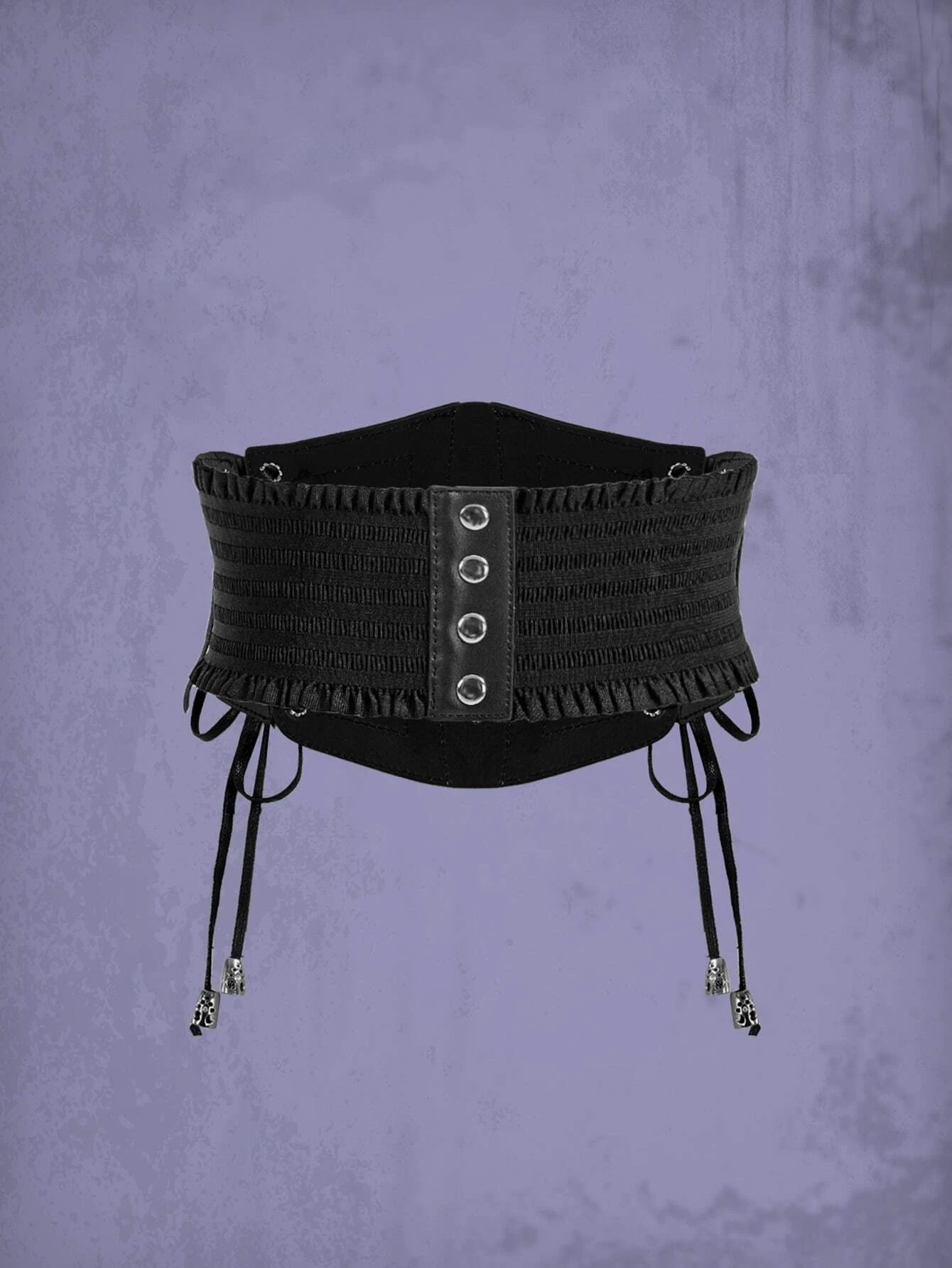 Aprólékosan kidolgozott, sokféle outfithez használható öv. Fűzővel állítható a bőség, derékrészen rugalmas anyagú, hátul patentos.