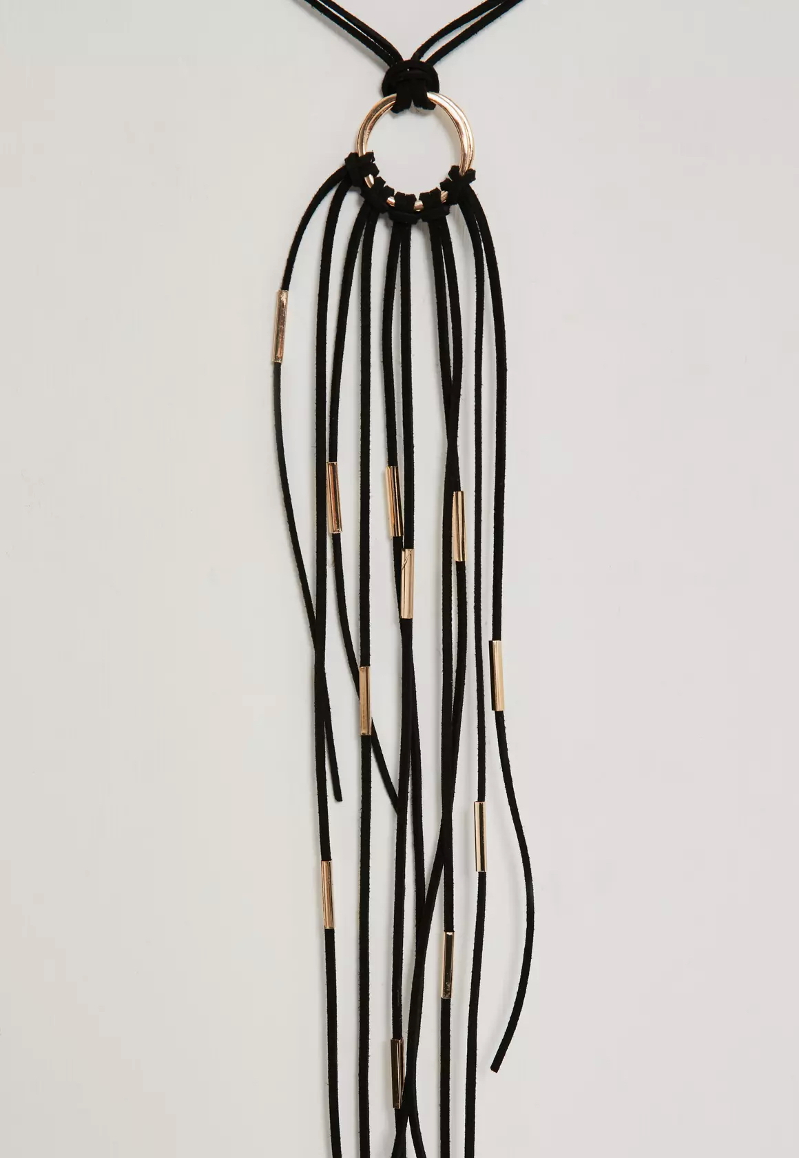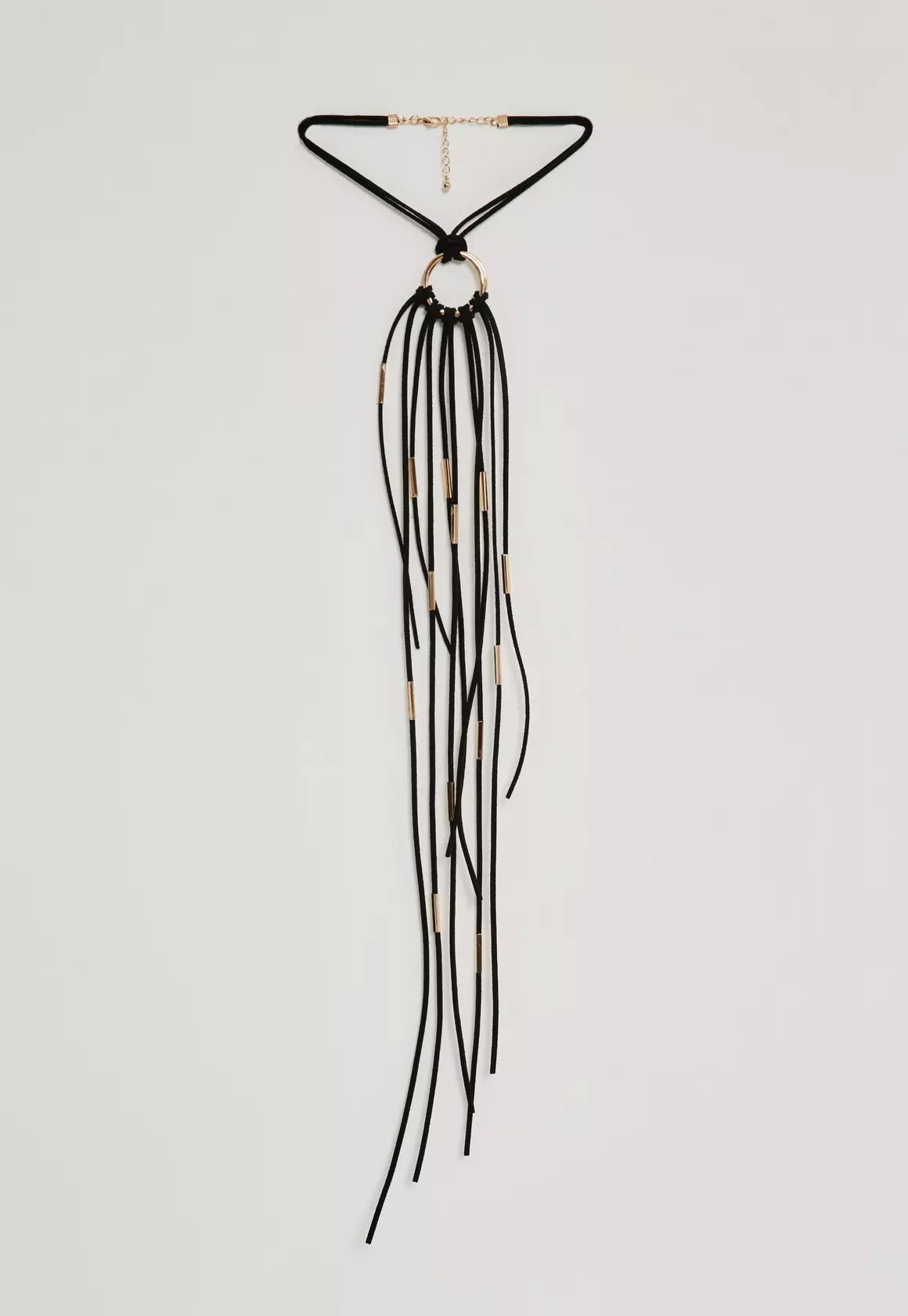 Hosszan lelógó, fekete rojtos nyaklánc, állítható méret
