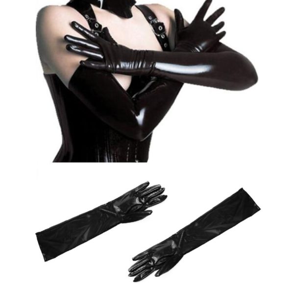 Fényes fekete könyök kesztyű, rugalmas, egyméret.