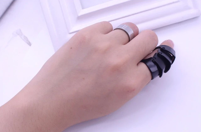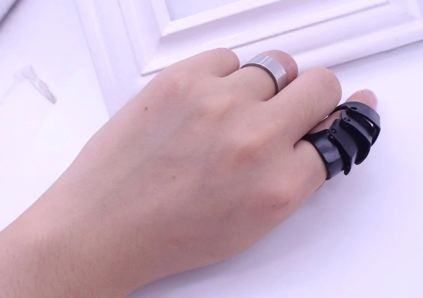 Trendi partigyűrű, fekete színben. Szegecseléses technikával készült, így követi az ujj mozgását.
