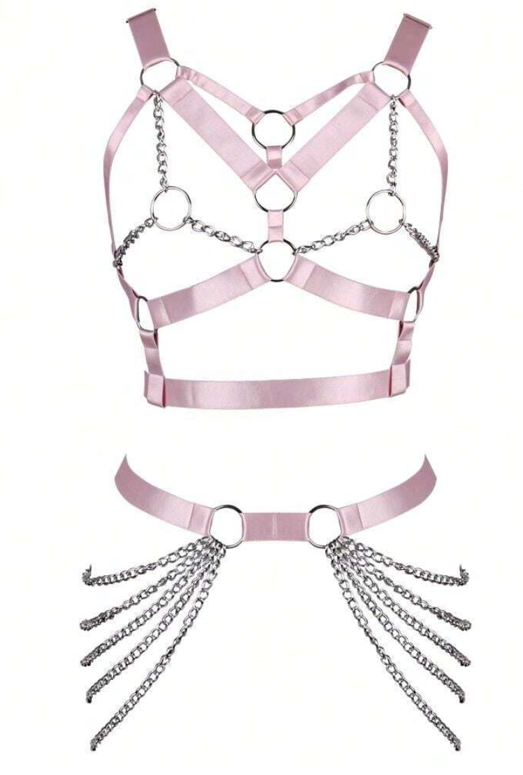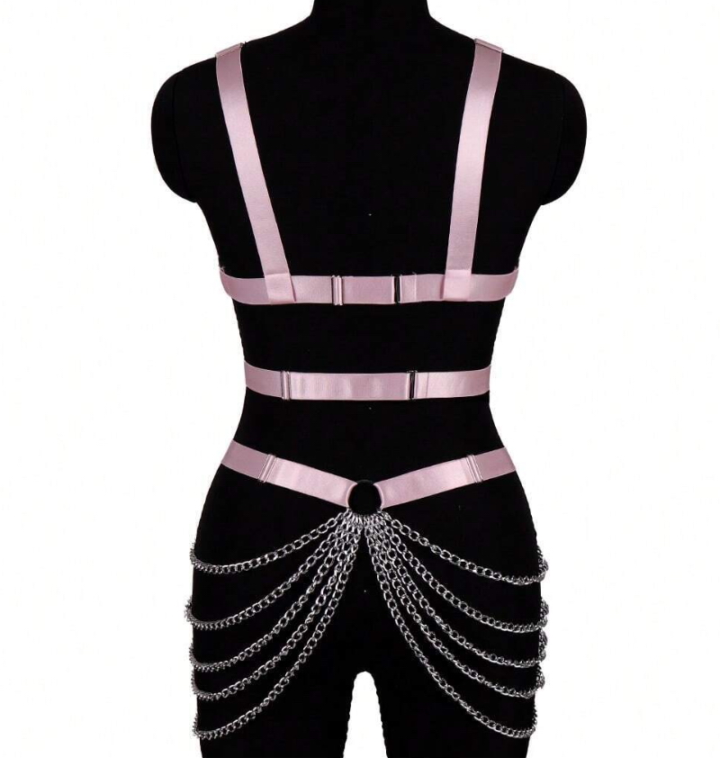 Láncos testhám/testheveder, rugalmas-állítható méret (pink)