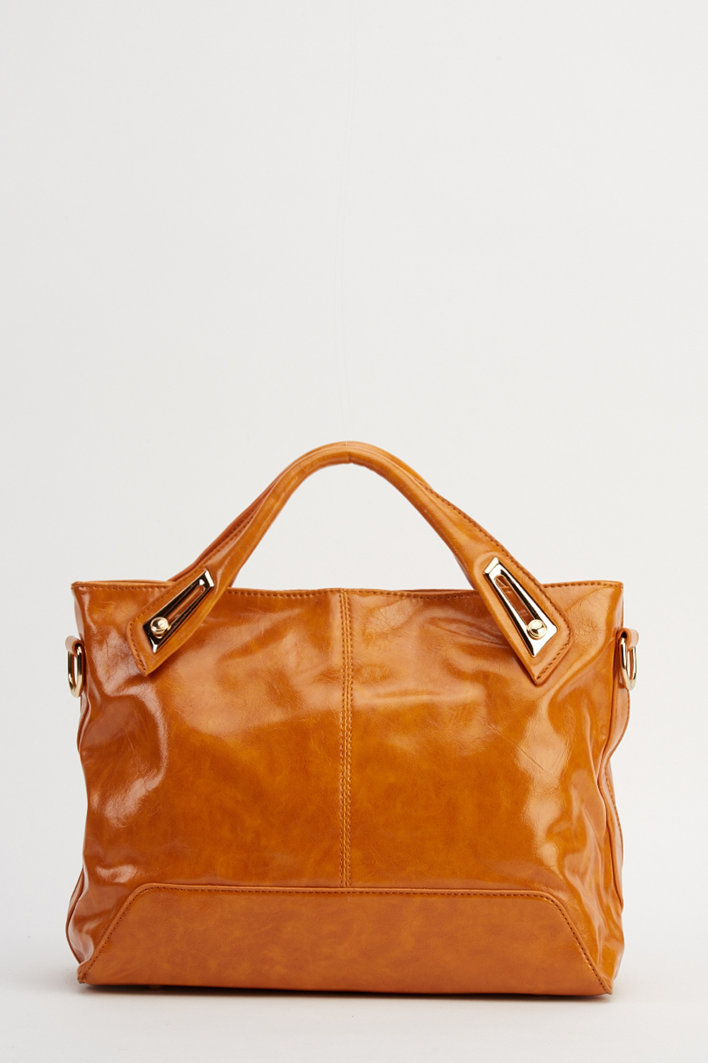 Mustársárga színű válltáska füllel, levehető, állítható vállpánttal. Zipzáros.