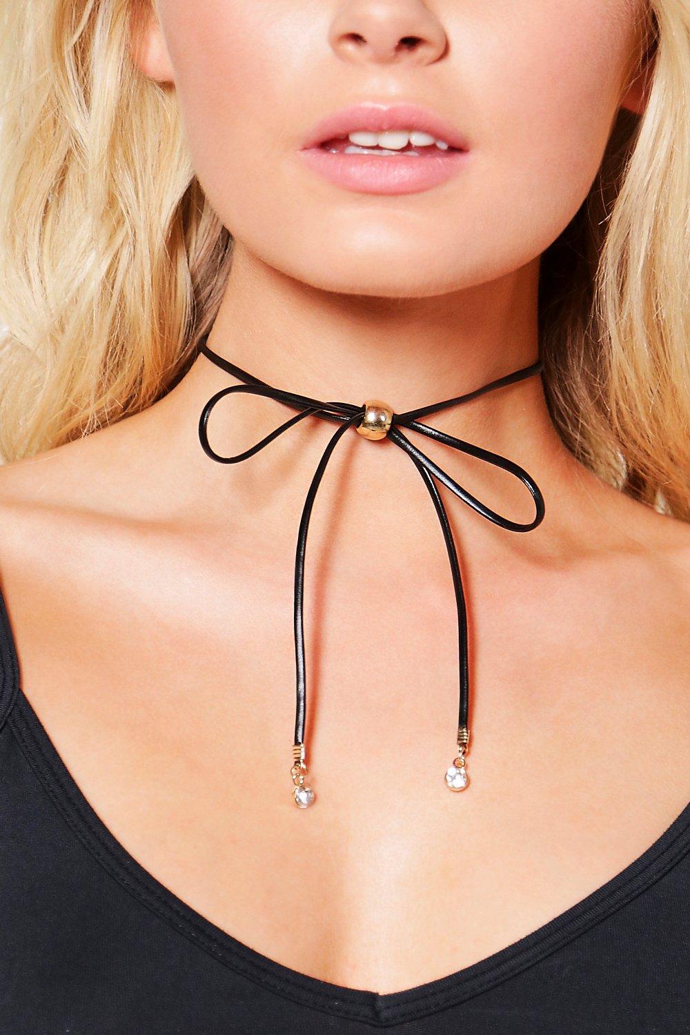 Phoebe fekete hasított bőr nyakpánt a két végén díszkövekkel