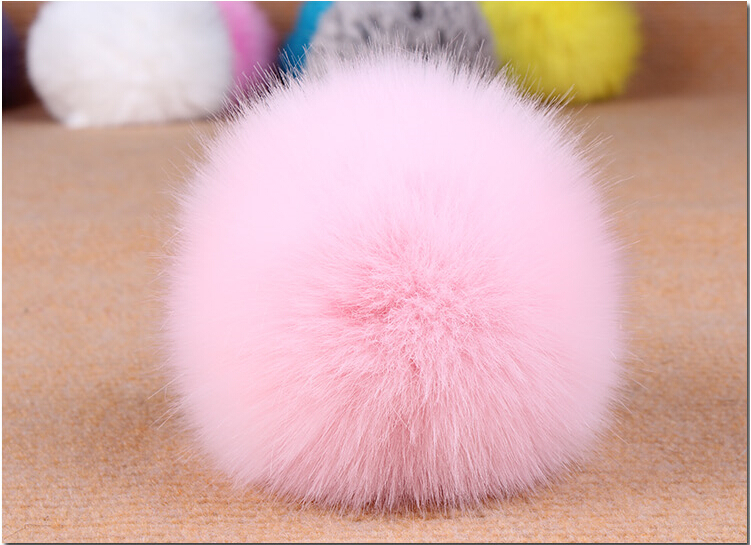 Puha nyúlszőr golyó kulcstartó, egyméret, pink