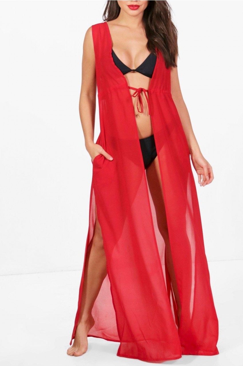 Sophia ujjatlan strand kimono, piros, L-méret