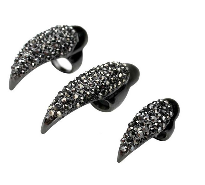 Szexi karom szett, fekete köves körömdísz gyűrűk (5 db)