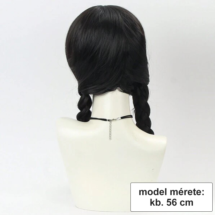 Wednesday Addams paróka, tartós (fekete) kb. 56 cm