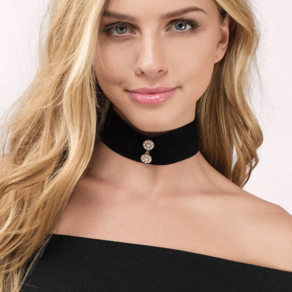 Fekete bársony nyakpánt lánc díszítéssel, állítható méret