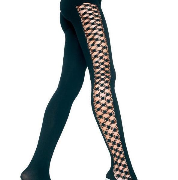 Fekete harisnyanadrág, necc mintás oldalsávval, Music Legs 5811, egyméret