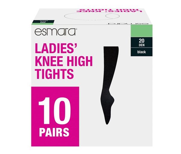 Női térdharisnya 10 páros kiszerelés, 20 den, egyméret, fekete