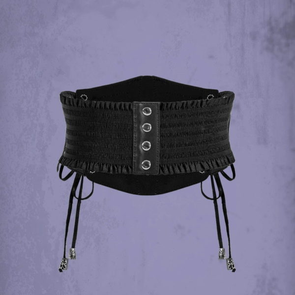 Széles deréköv, 3 soros gyűrűs díszekkel, fekete, egyméret (M-L)