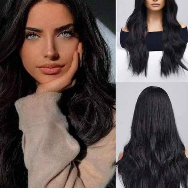 Hosszú, hullámos paróka, tartós (fekete) kb. 60 cm