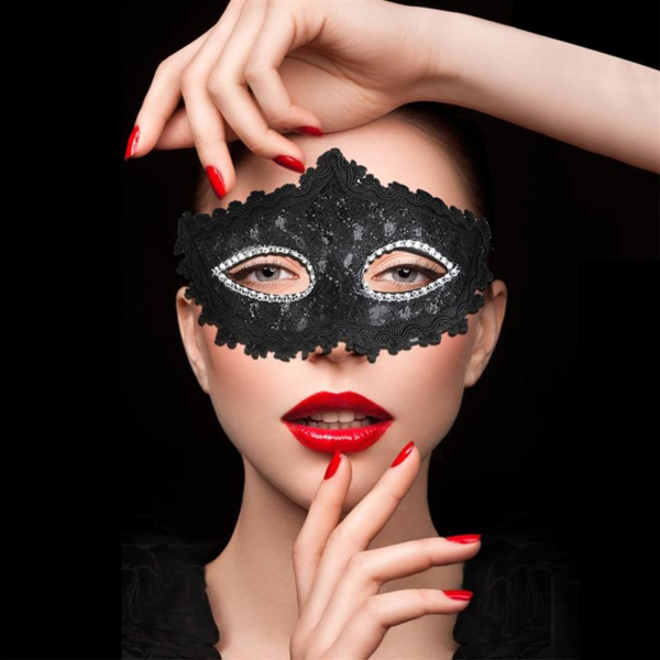 Szexi csipkés maszk, kristálydíszekkel, egyméret