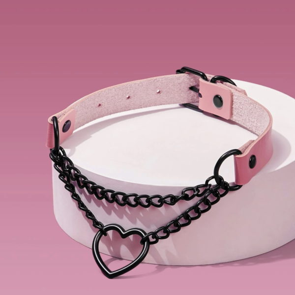 Szív medálos nyakpánt, fekete-pink, állítható méret